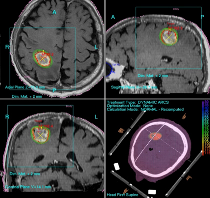 - 高精度治療が可能頭部、体幹部の病変部にピンポイントで照射する定位放射線治療(SRSまたはSRT)ができます。